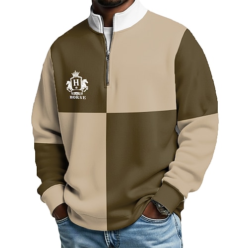 Per uomo Blocco di colori Polo con zip Manica Lunga Magliette polo Colletto alla coreana Casual Scuola Athleisure Ferie Abbigliamento quotidiano Stampa 3D Polo con cerniera a un quarto Primavera