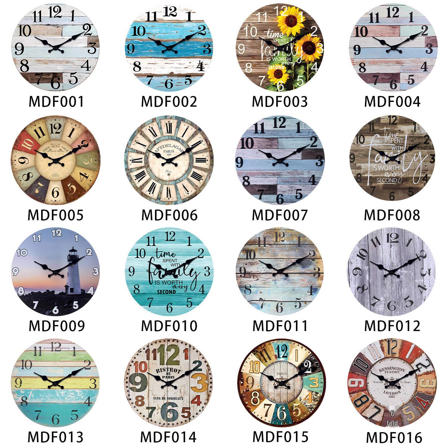 12 Retro Wooden Wall Clock for Living Room - Silent Design