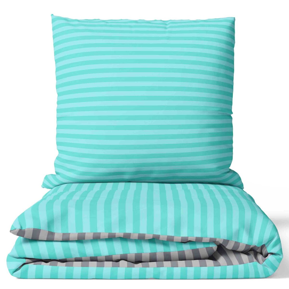 Leonado Vicenti Baumwolle Bettwäsche 240x220 cm Petrol Türkis Grau gestreift Wendeseite Reißverschluss 3 tlg