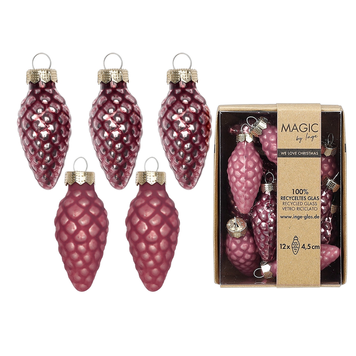 12 Christbaumschmuck Zapfen 4,5cm Glas Christbaumkugeln matt & glänzend kleine Weihnachtskugeln Weihnachten Weihnachtsbaumschmuck Deko Dusty Rose