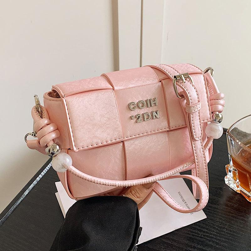2025 new high-end foreign-style niche woven hand-carried small square bag fashionable and versatile commuter messenger bag woman silver