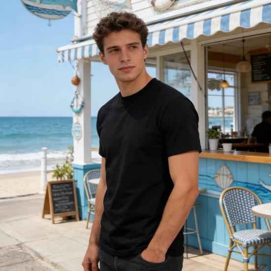 Yousheng Men Slim T-Shirt Crew Neck Short Sleeve Summer Tee Casual Solid Color Tee Shirt for Gym Street Beach cm apricot