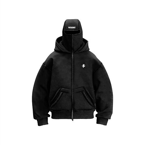 Felpa con cappuccio da uomo passamontagna con cerniera intera, maschera da sci, cappuccio nero bianco rosso, semplice, tasca, sportivo, all'aperto, quotidiano, festivo, poliestere, streetwear, basic, casual, primavera, autunno, abbigliamento,...