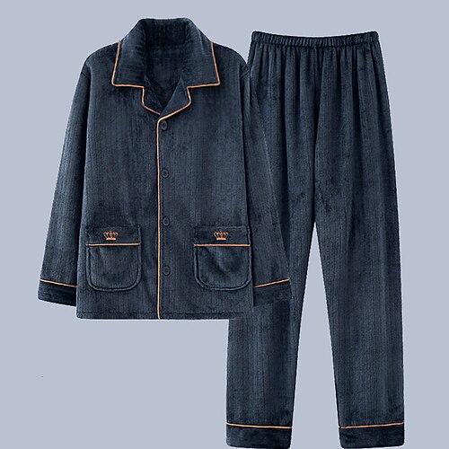 Per uomo Pigiami Set Pigiama Top e pantaloni del pigiama 1 Set Ogni Moda Elegante Classico Casa Quotidiano Da letto Sherpa Poliestere Calore Termico Comodità Morbido Bavero Manica Lunga Pantalone