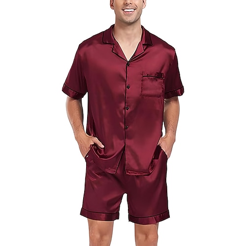 Per uomo Pigiami Set Pigiama Top e pantaloncini del pigiama 1 Set Semplice Moda Elegante Classico Quotidiano Casa Da letto Spandex Poliestere Comodità Morbido Traspirante Bavero Manica Corta Camicia