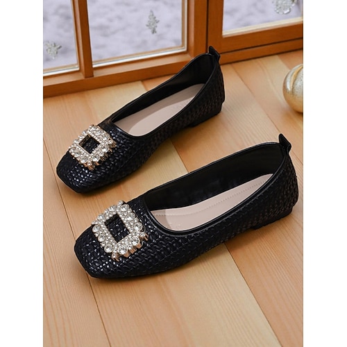 ballerine da donna con fibbia in strass rossi - eleganti scarpe slip-on con punta tonda per l'ufficio, l'uso quotidiano e i tè pomeridiani