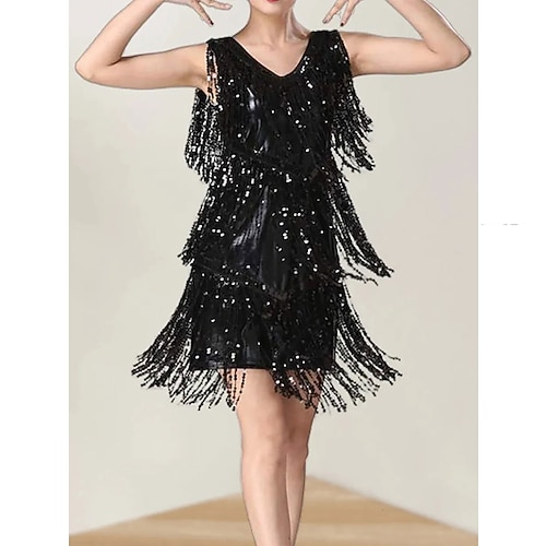 Danza Latina Vestito Giunzione Paillette Per donna Performance Allenamento Festa a Tema Senza Maniche Spandex