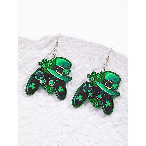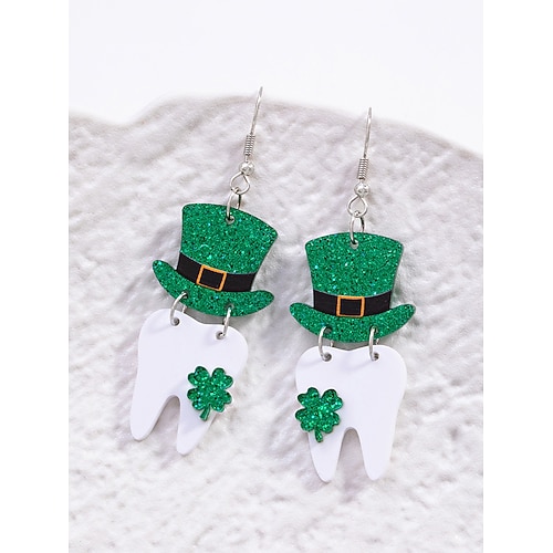 orecchini pendenti in acrilico a forma di trifoglio per il giorno di San Patrizio da donna, orecchini pendenti leggeri a forma di trifoglio glitterato, gioielli verdi irlandesi multi-stile per donna, perfetti per sfilate natalizie, feste e...