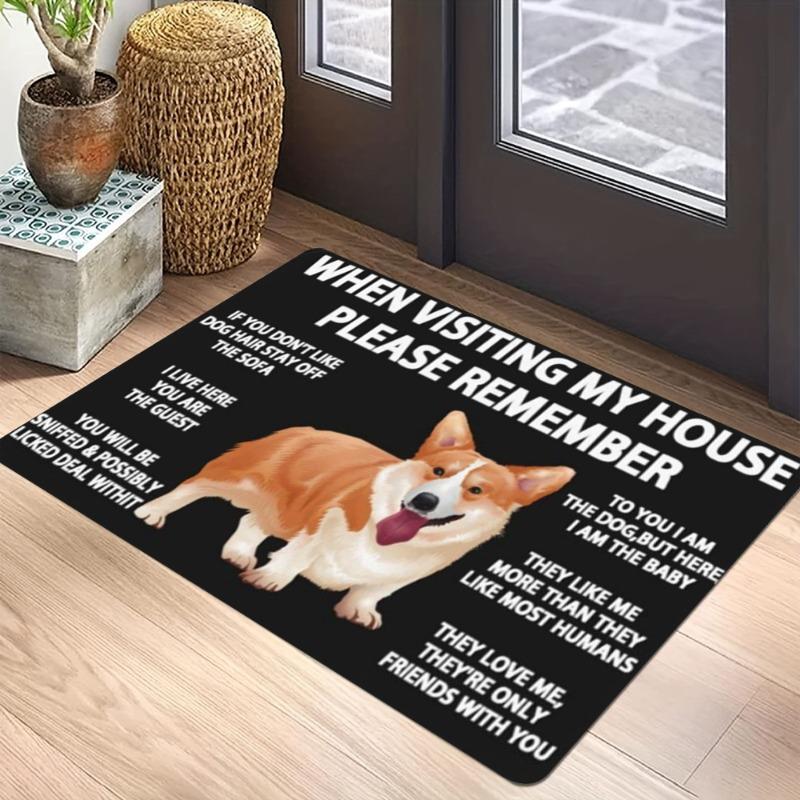 Cartoon Geometric Pet Dog Carpet Mat Rug French Bulldog Corgi Pomeranian Humorous Quote Home Decoration Entryway Doormat Black