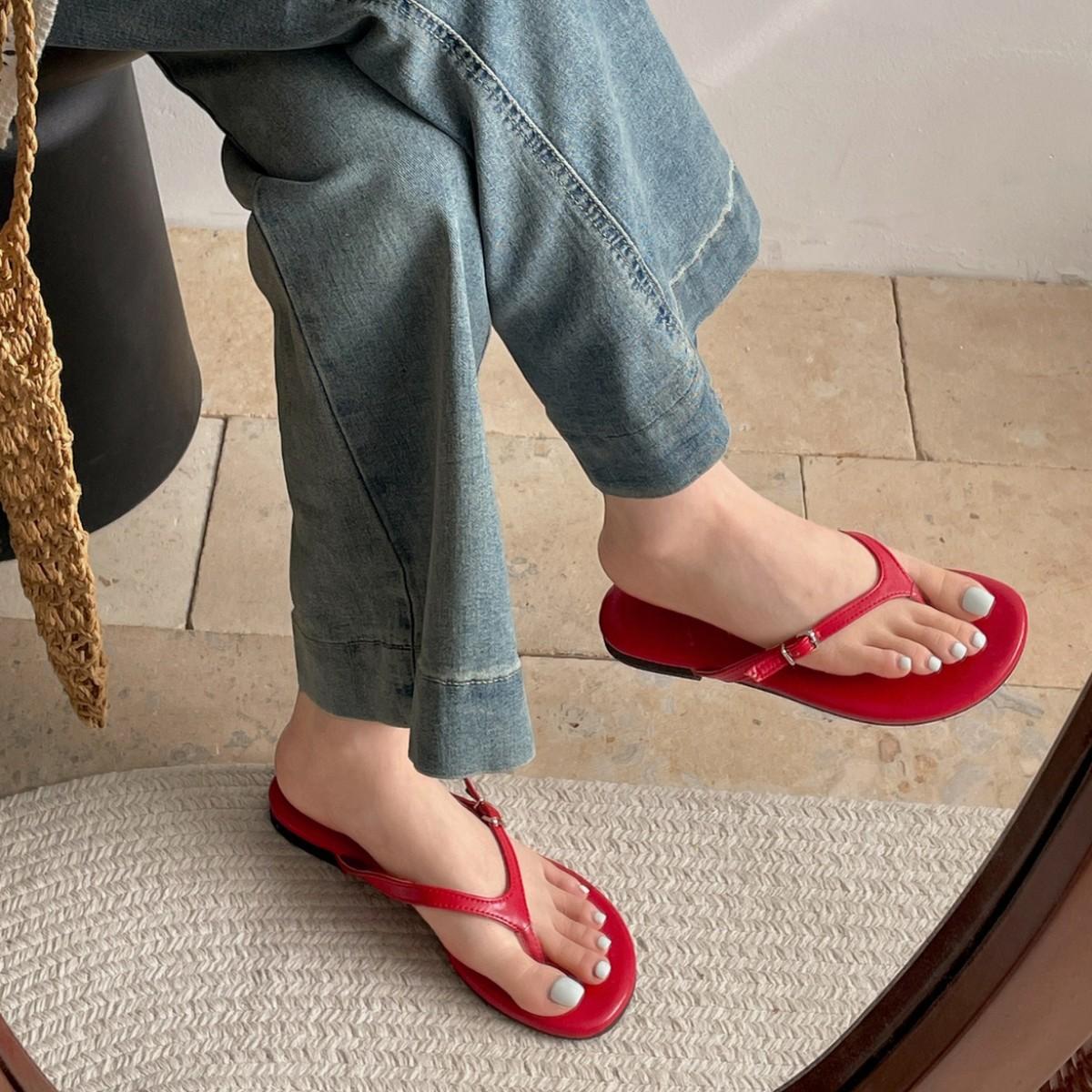 Red high-end non-slip flat-bottomed flip-flops women's 2025 new summer wear with skirt French sandals cm black