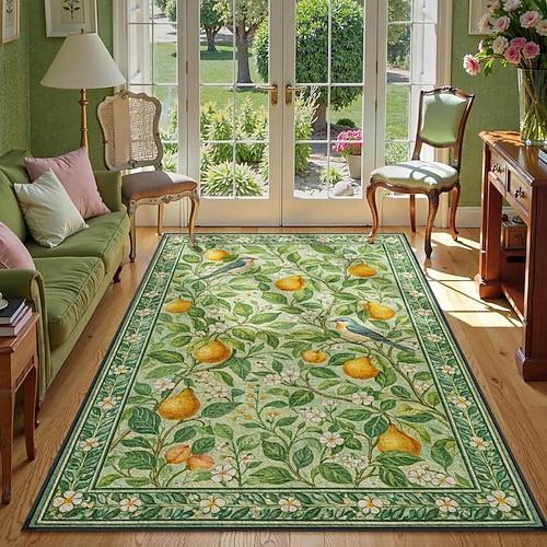 tappeto decorativo con albero di pere, frutta e uccelli, verde, per soggiorno, camera da letto o arredamento per la casa