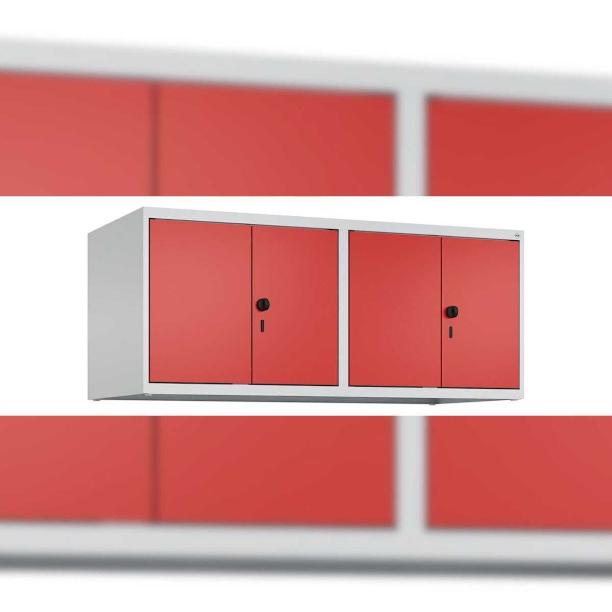 C+P Doppelter Aufsatzschrank Classic PLUS, 4 Abteile, HxBxT 50x120x50cm, Sicherheitsdrehriegel, Hellgrau/Rot von PROREGAL
