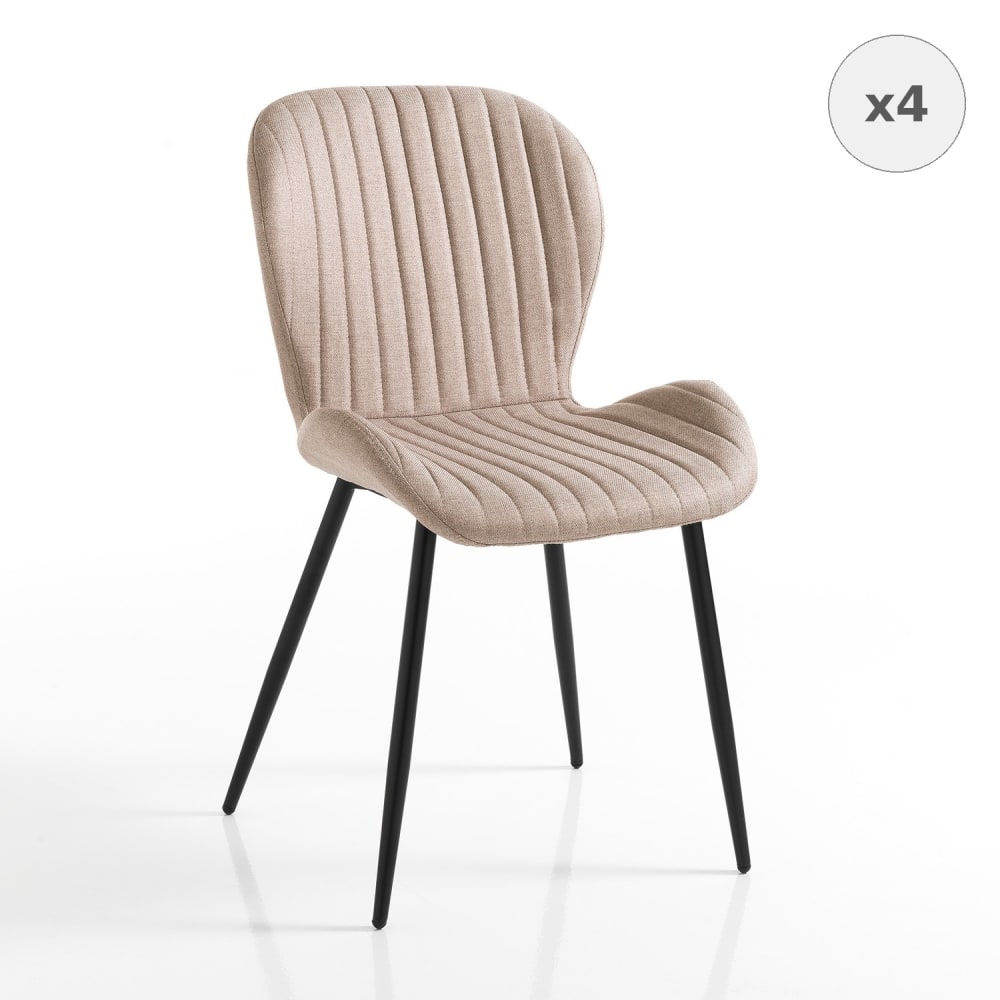 Lot de 4 chaises tissu brun clair métal noir
