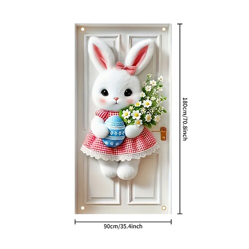 striscione per copriporta pasquale, decorazioni con uova di Pasqua colorate e coniglietti, bandiera festiva per esposizioni primaverili festive, perfetto per copriporta, sfondo e decorazioni