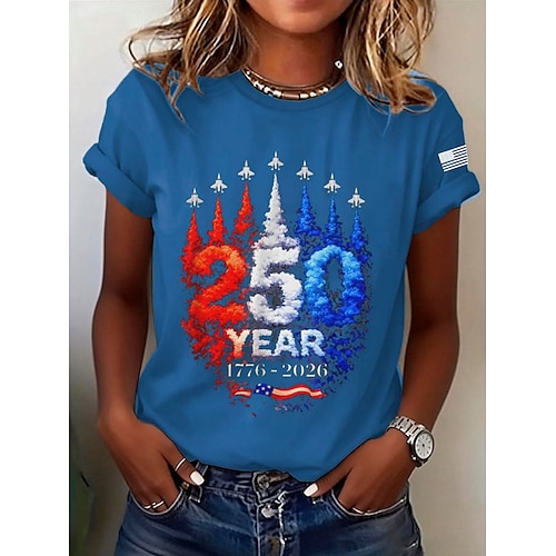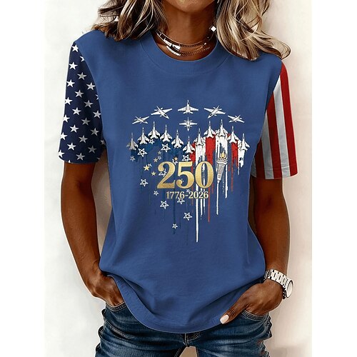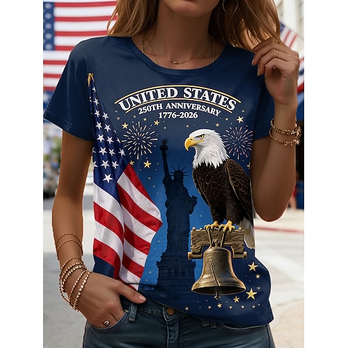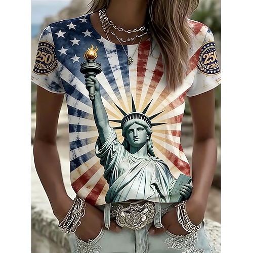 Maglietta Patriottica Giorno dell'Indipendenza Americana 250° Anniversario per Donne T-Shirt Grafica Bandiera Nazionale Vintage Elegante Classica Maniche Corte Collo Giro Collo Rotondo Stampa