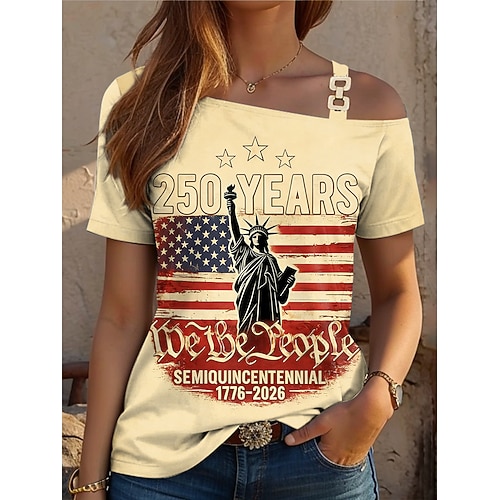 Giorno dell'Indipendenza Americana Per donna Maglietta Stampato Asimmetrico Grafico Bandiera Americana Vintage Moda Casual Manica Corta Monospalla Top Regolari Quotidiano Uscire Weekend Nero Rosso