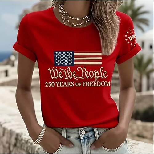 Giorno dell'Indipendenza Americana Per donna Maglietta Stampato Grafico Bandiera Lettera Elegante Classico Casual Manica Corta Girocollo Top Regolari Quotidiano Blu Nero Rosso Estate Primavera