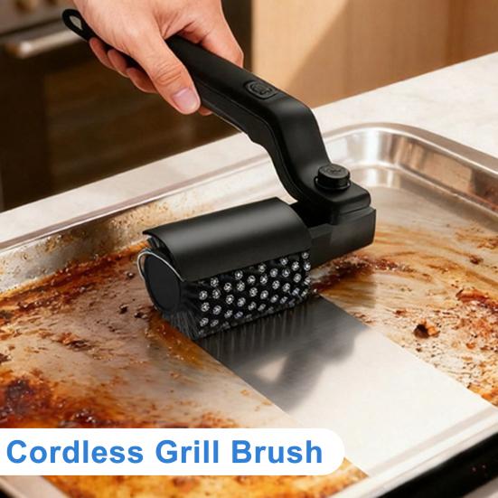 Trådløs elektrisk grillbørste Oppladbar grillrenser 3-trinns justerbart hode i rustfritt stål Fettfjerner BBQ-børste for utendørs matlaging Svart