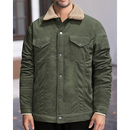 Per uomo Giacca di velluto a coste Antivento Giornaliero Da mare Tenere al caldo Colletto in pile Nessuna fodera in pile Autunno inverno Liscio Di tendenza Streetwear Bavero Standard Blu Cachi Verde