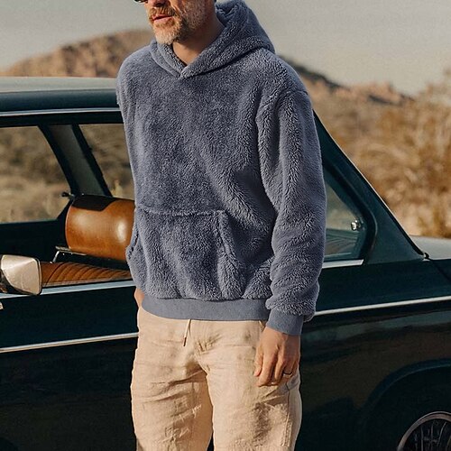 Per uomo Felpa con cappuccio Felpa con cappuccio in pile Nero Blu marino Blu Marrone Cachi Con Cappuccio Semplice Tasca Sport Outdoor Quotidiano Ferie Poliestere Streetwear Essenziale Casual