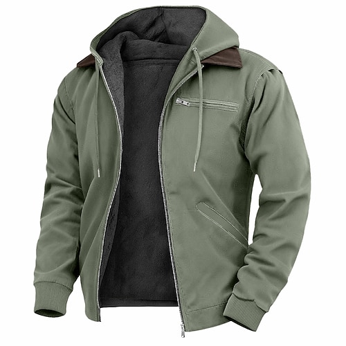 Per uomo Felpa con cappuccio a zip intera Giacca in Pile Felpa con cappuccio in pile Verde militare Blu marino Marrone Grigio scuro Con Cappuccio Mucca Cerniera Tasca Casuale Quotidiano Uscire