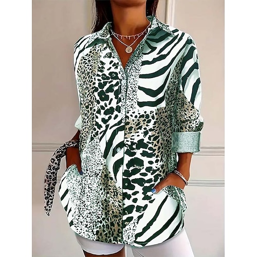 Camicia da donna in lino simile traspirante leggera leopardata elegante bohemien vintage camicia manica lunga colletto lavoro quotidiano stampa bottoni giallo blu marrone primavera inverno primavera