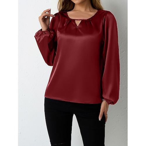 Per donna Camicia in raso Camicia elegante Blusa Tinta unica Elegante Casual Manica Lunga Girocollo Top Regolari Quotidiano All'aperto Abbigliamento casual alla moda Blu Nero Rosa Vino Viola