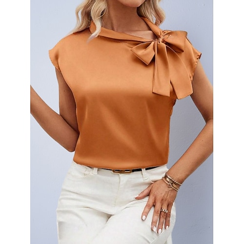 Per donna Camicia Camicia in raso Blusa Semplice Elegante Essenziale Classico Manica Corta Cravatta al collo Top Regolari Quotidiano Ferie Uscire Giallo Verde chiaro Blu Reale Viola Arancione Estate