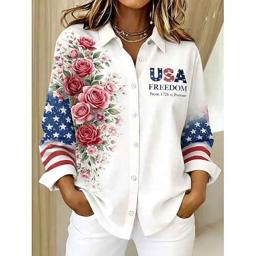 Giorno dell'Indipendenza Americana Per donna Camicia Bottoni Stampato Grafico 250° anniversario degli Stati Uniti Vintage Elegante Moderno Manica Lunga Colletto a Camicia Top lunghi Quotidiano Blu