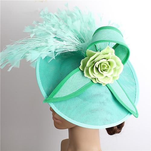 Fascinator Sinamay Matrimonio Derby del Kentucky Cocktail Retrò Da Sposa Con Piuma Floreale Copricapo Copricapo