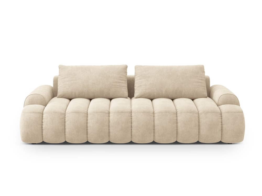 Canapé convertible coffre de rangement 4 places velours beige clair