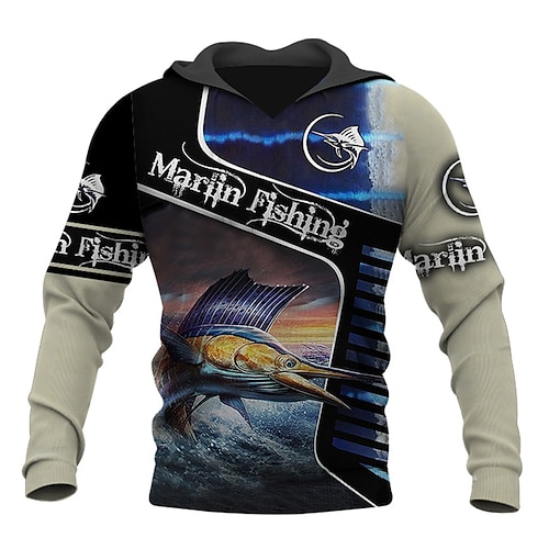 Per uomo Grafico Animale Pesce Felpa con Cappuccio Felpe con cappuccio Felpa Streetwear Designer Casual Grande e Alto Manica Lunga Con Cappuccio Sport Outdoor Quotidiano Khaki chiaro. Nero Blu