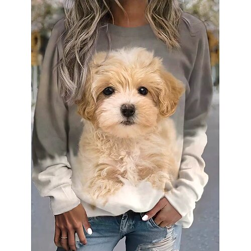 Per donna Felpa Pullover Felpe con cappuccio Animale Gatto Cane Moda Casual Manica Lunga Girocollo Top Regolari Casuale Streetwear Abbigliamento Quotidiano Stampato Rosa Marrone Grigio chiaro