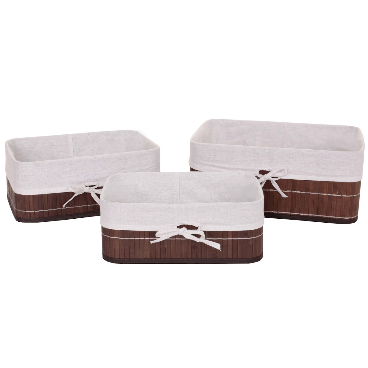 Mendler 3er Set Aufbewahrungskorb HWC-C21, Korb Aufbewahrungsbox Ordnungsbox Sortierbox Regalkorb, Bambus ~ braun