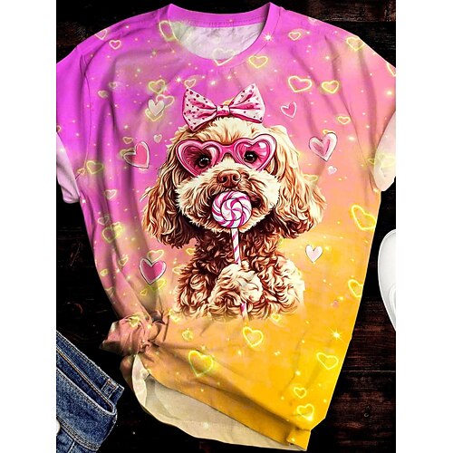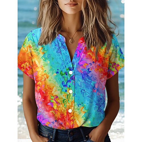 Per donna Maglietta Floreale Blocco di colori Casual Manica Corta Girocollo Top Regolari Quotidiano Stampato Arcobaleno Estate