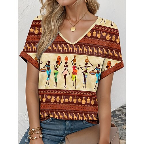 Camicia boho da donna grafica geometrica elegante bohemia tropicale senza maniche manica corta tops regolari stampa quotidiana indumenti per vacanze estate verde erba giallo rosa blu viola estate