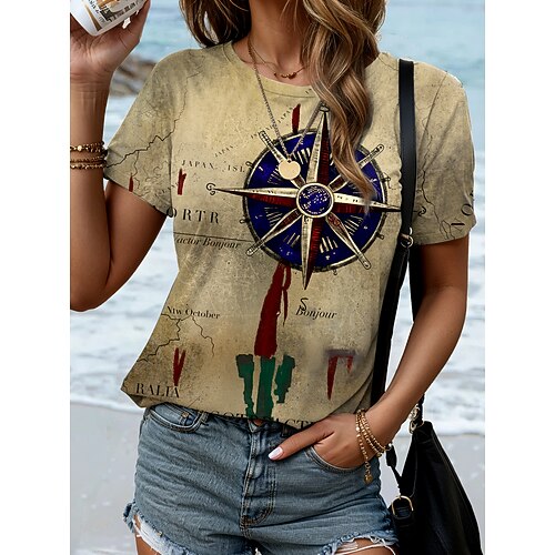maglietta da donna casual stampa manica corta top regolari quotidiano nero rosa blu azzurro estate