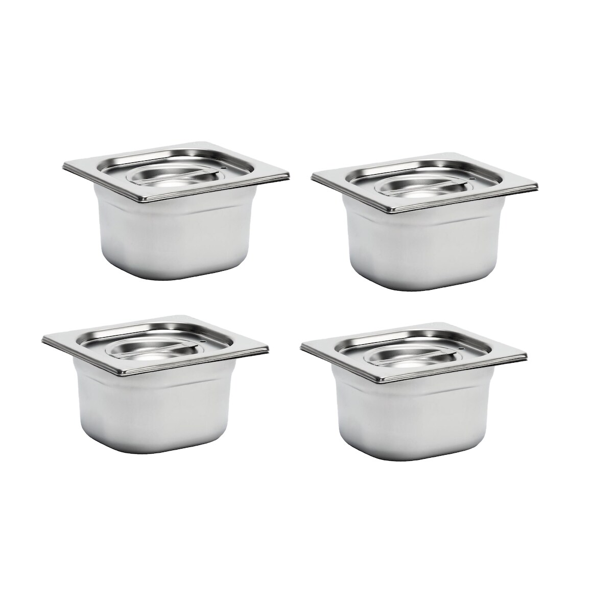 Gastronoble Gastro M Edelstahl GN-Behälter GN1/6 incl. Deckel - 10cm - 2,1 L - 4 Behälter
