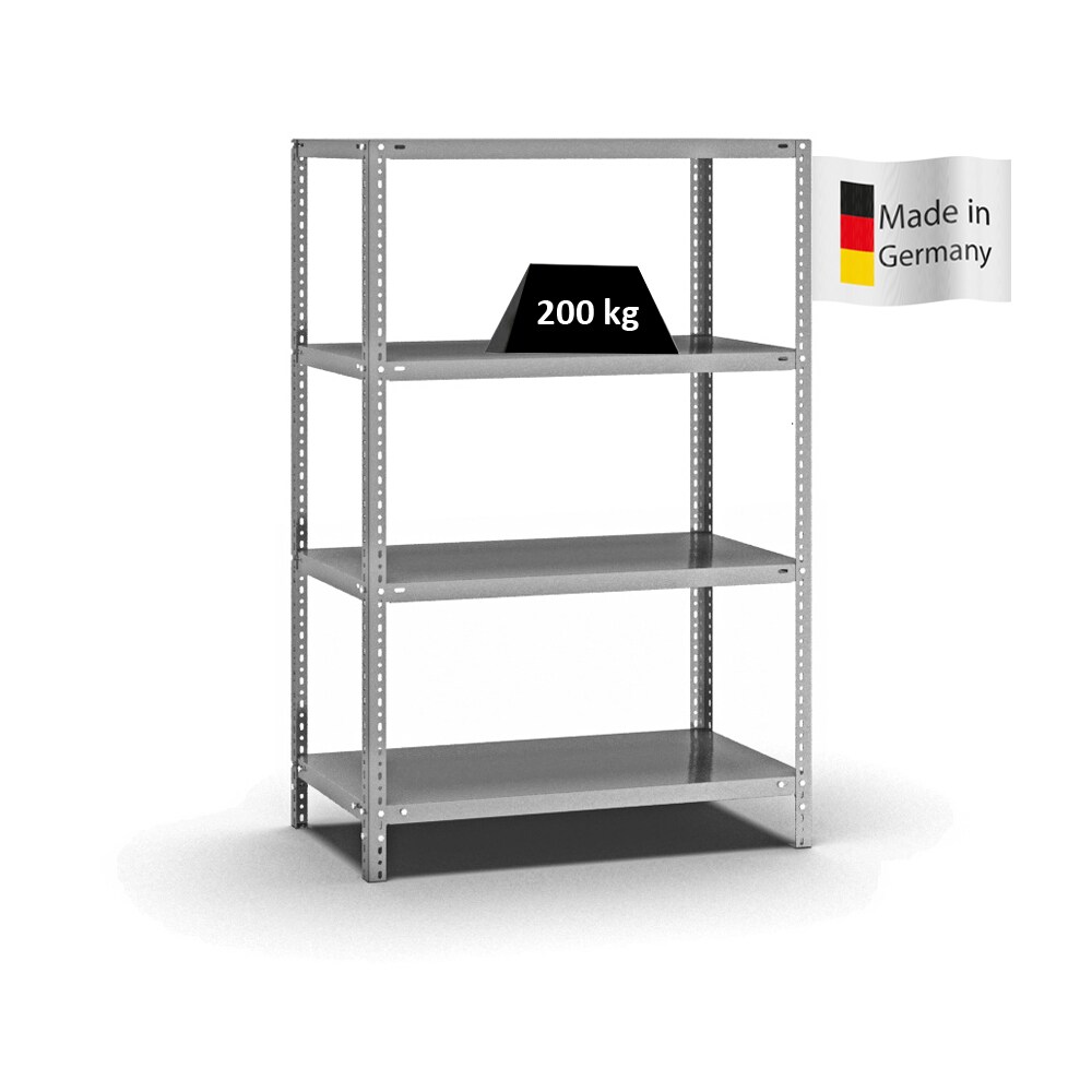 PROREGAL Fachbodenregal Schraubsystem | Grundregal | HxBxT 150x100x50cm | 4 Ebenen | Fachlast 200 kg | Beidseitig nutzbar | Verzinkt