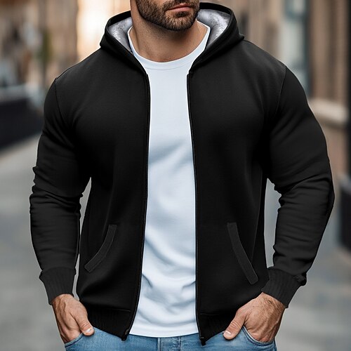 Per uomo Felpa con zip Felpa con cappuccio in pile Nero Rosso Blu marino Grigio Con Cappuccio Colletto Mao Semplice Con zip Tasca Frontale Sport Outdoor Casuale Quotidiano Streetwear Cool