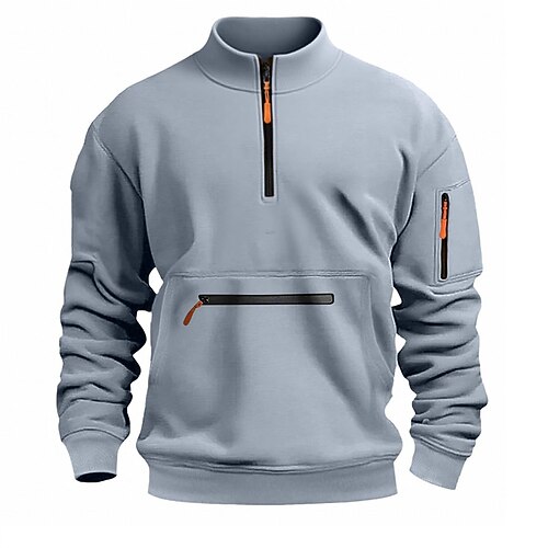 Per uomo Felpa Pullover Polo con zip Sport all'Aperto Casuale Colletto Mao Zip a un quarto Manica Lunga Moda Essenziale Semplice Zip a un quarto Primavera Autunno Vestibilità regolare Blu marino