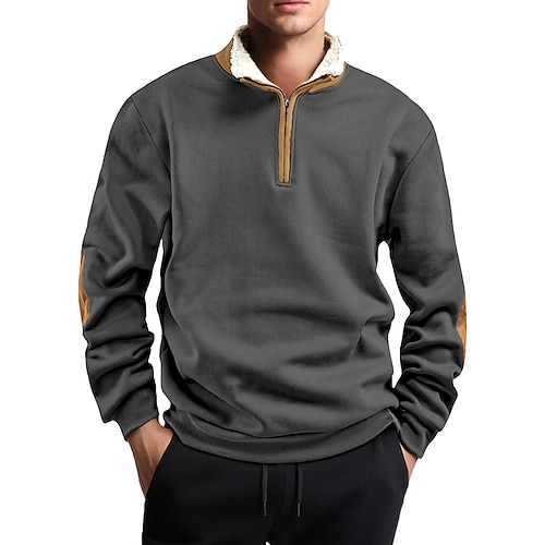 Per uomo Maglia Felpa in pile Maglione Felpa con zip corta Nero Blu marino Cachi Grigio chiaro Grigio scuro Colletto Mao Mezza zip Semplice Patchwork Blocco di colore Sport Outdoor Casuale