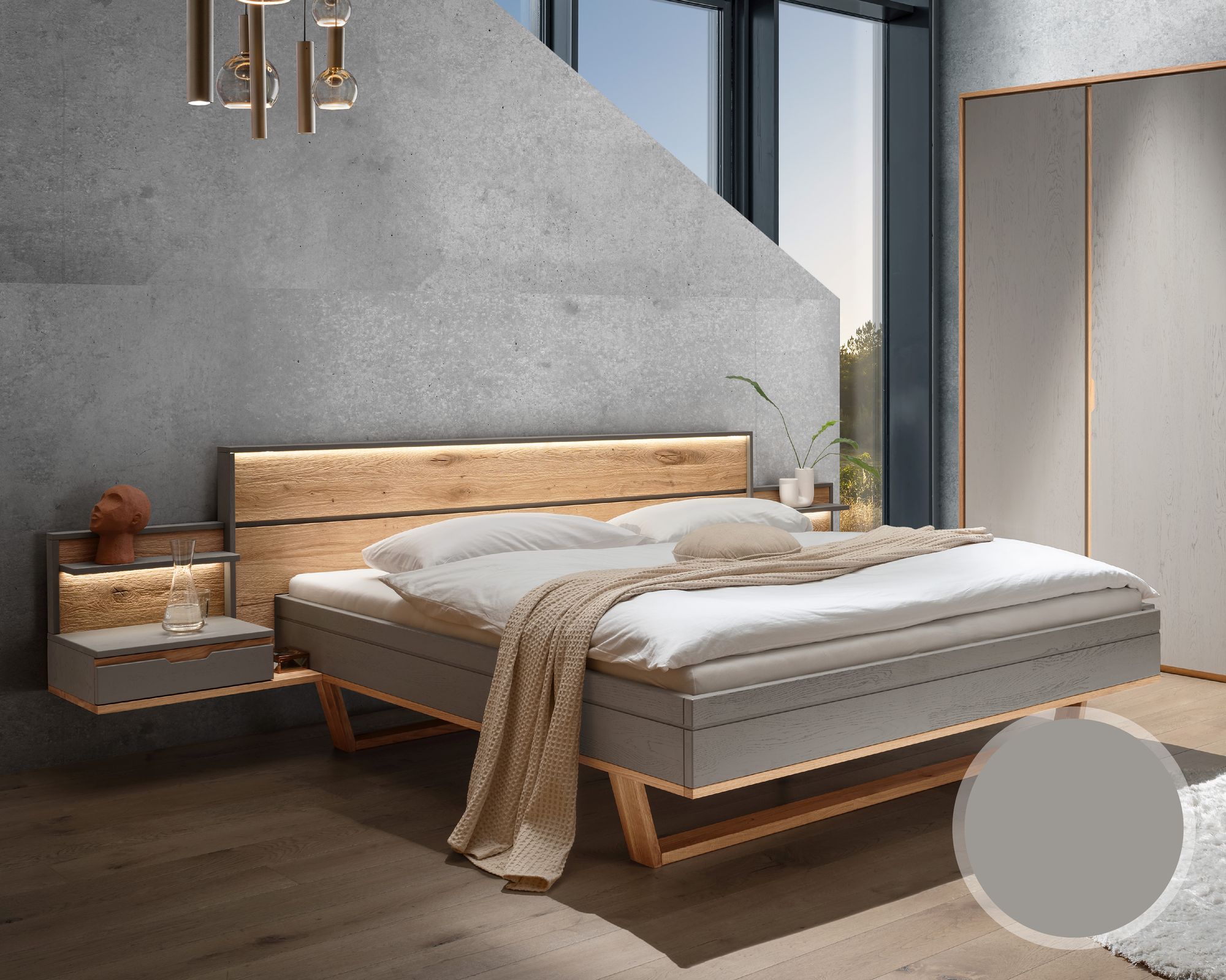 Forestales »Alabama« Wildeiche Massivholzbett Grau 200x200 cm / ohne Beleuchtung / ohne Nachttisch / ohne Bettschublade