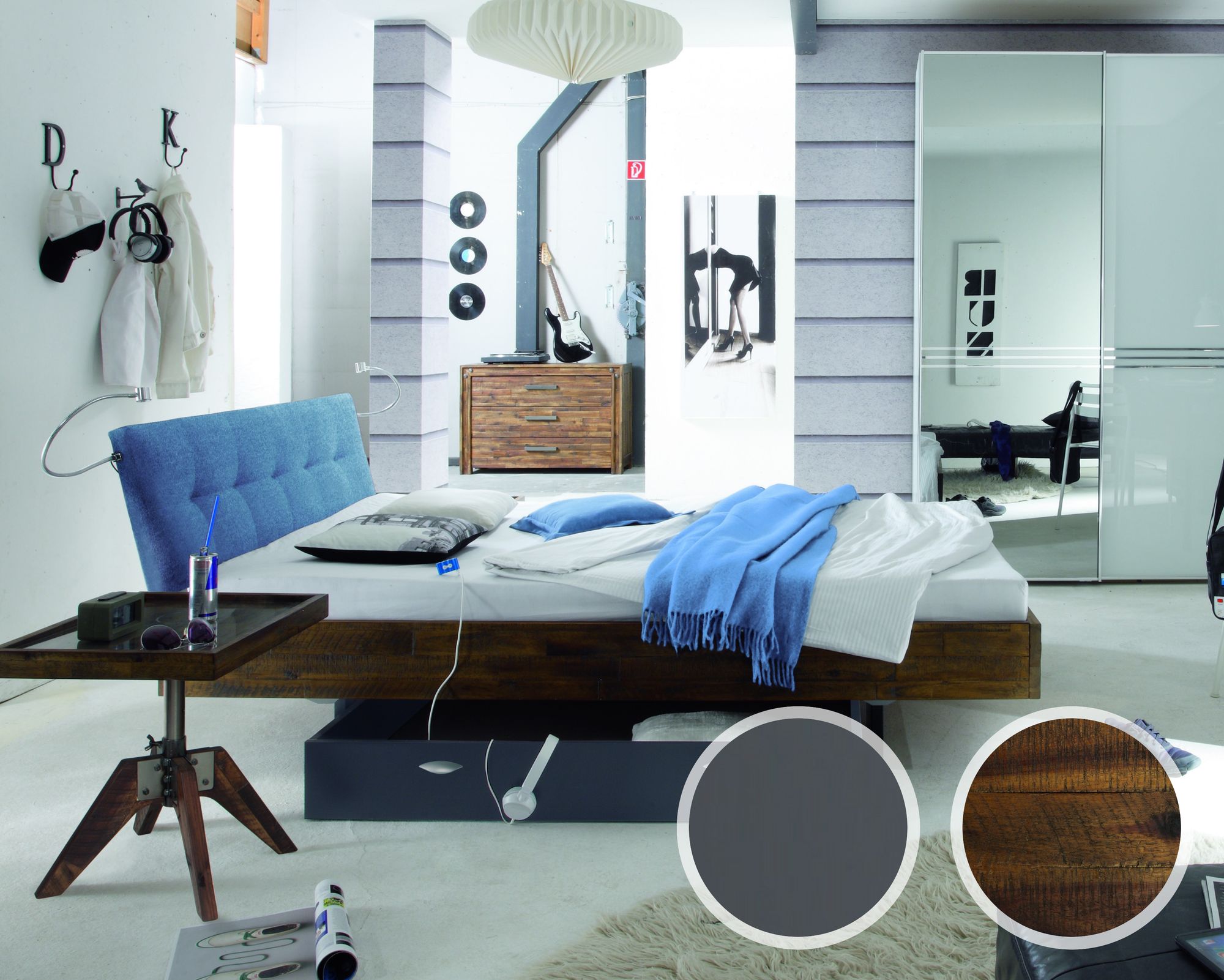 Hasena Factory-Line Massivholzbett Bloc Stabil/Duna 140x200 cm grau