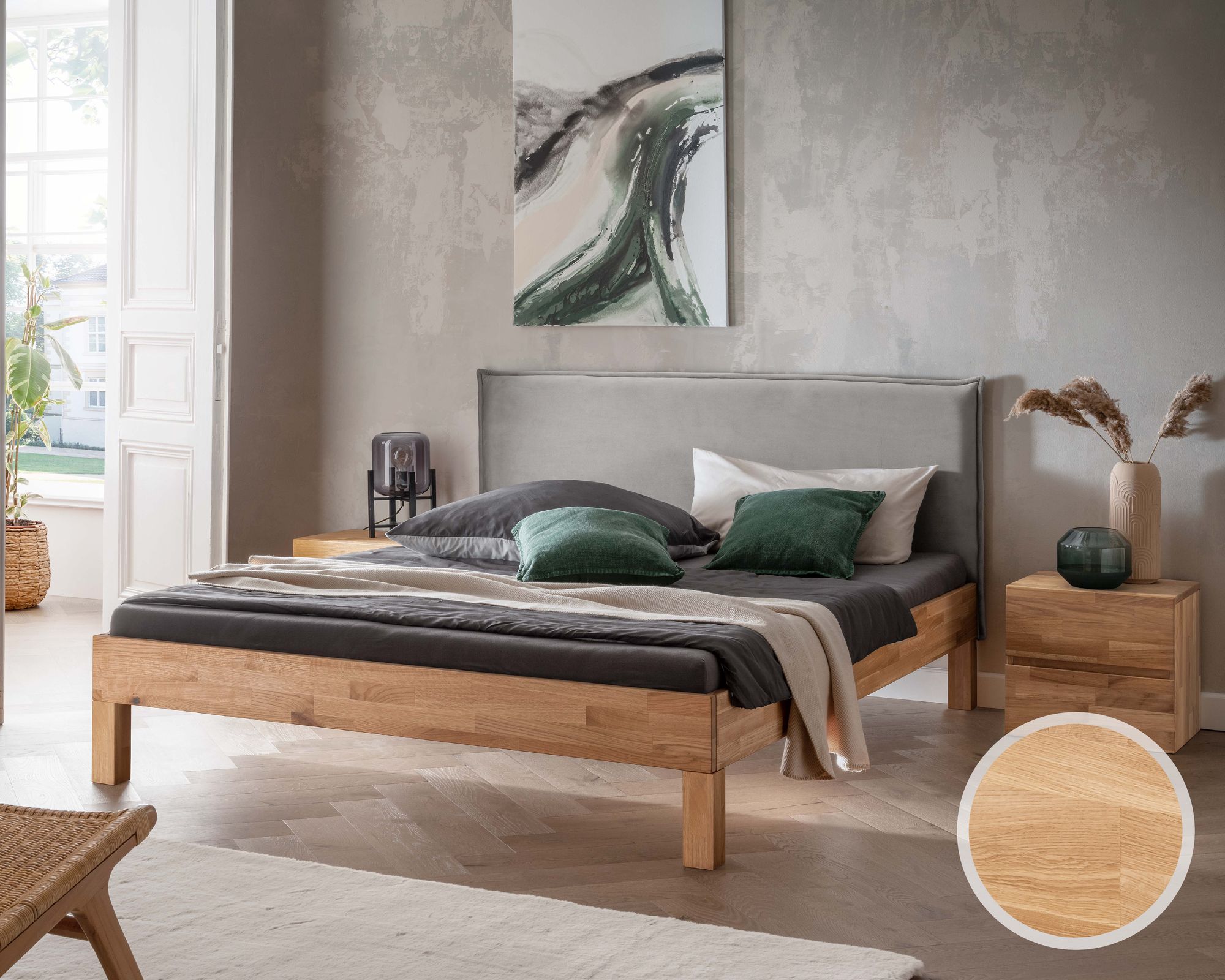 BlackWood »Dolce Vita I« Wildeiche Massivholzbett 140x220 cm / Wildeiche stone / mit Kissen 2er-Set