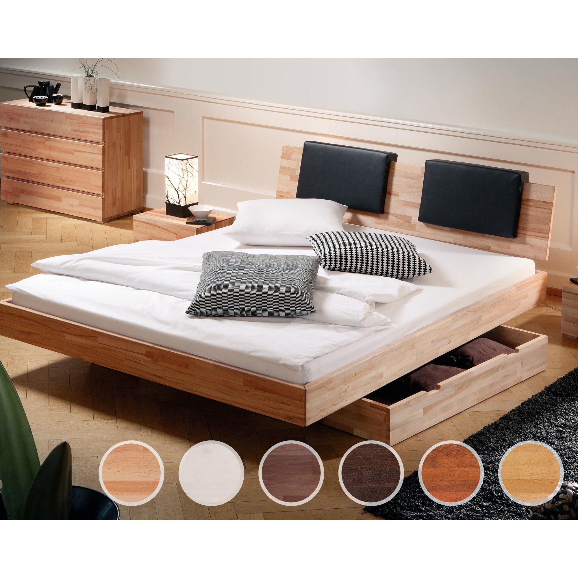 Forestales »Astoria« Massivholzbett IV 140x200 cm / Kernbuche / Kopfteil Lamellen / mit Bett-Schublade