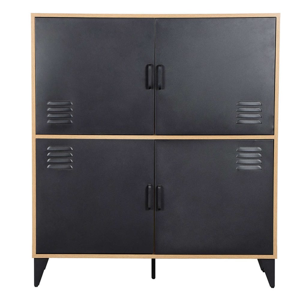 Buffet haut industriel 4 portes L100cm effet bois et noir