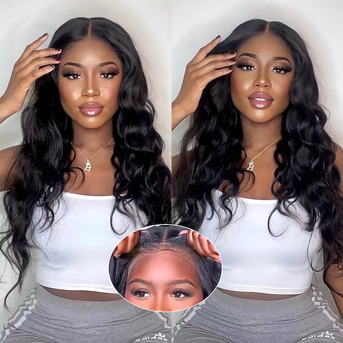 parrucca in pizzo 55 con capelli umani di colore naturale, parrucca in pizzo con onda del corpo in pizzo, nodo sbiancato in pizzo con densità del 150% di parrucche di capelli umani da 22-30 pollici