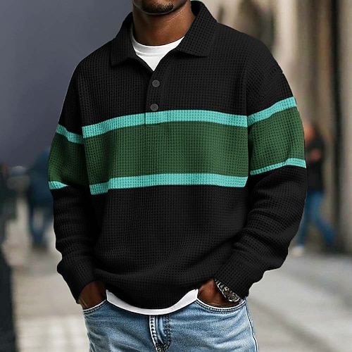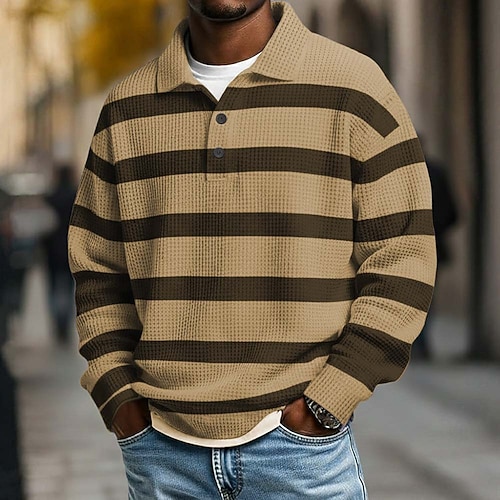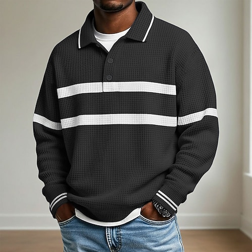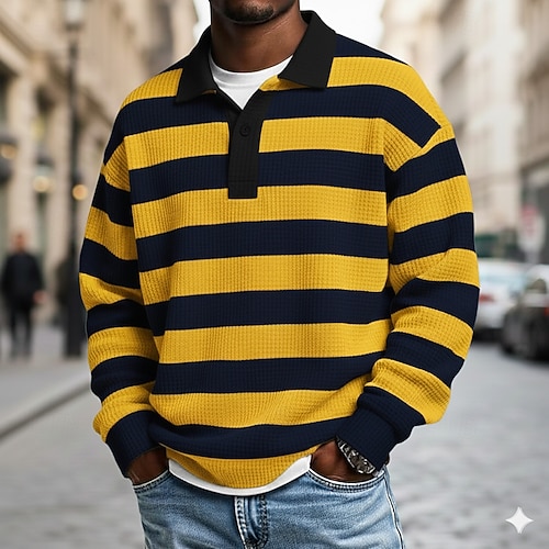 Per uomo Strisce orizzontali Magliette Polo a Nido d'Ape Polo da rugby Testurizzato Manica Lunga Magliette polo Bavero Abbigliamento Sportivo Casual Scuola Athleisure Abbigliamento quotidiano Stampa