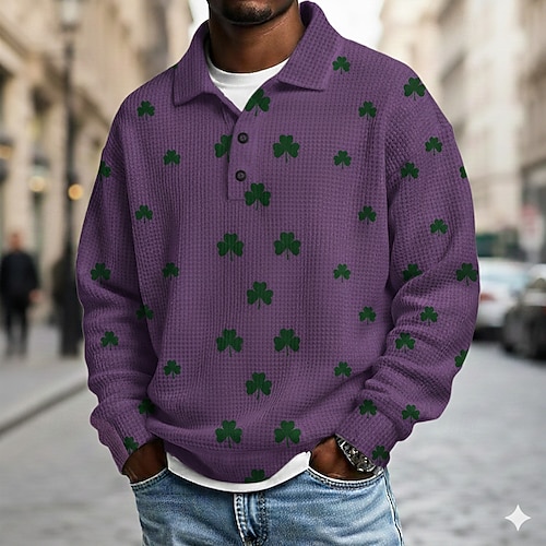 San Patrizio Per uomo Trifoglio Magliette Polo a Nido d'Ape Polo Manica Lunga Magliette polo Bavero Casual Athleisure Abbigliamento quotidiano Abito da festa Stampa 3D Primavera Bianco Giallo Viola